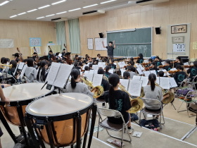 ・5階の音楽室へ階段で楽器や備品を運ぶのは結構きつかった。でも、当時はめずらしく冷房付きの大音楽室。天井は髙く、100名のメンバーが入っても、まだ余裕を感じる広さ。まるで音楽ホールようにも感じた。ひな壇も常設され、楽器室も2部屋。個人練習室3室!!。すべてがびっくり