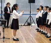 ・コンクールではなかなか歌わない曲をたくさん歌おう!という小磯先生の思いで、選曲は曲趣が違って、様々な表現が楽しめる曲を選んだ。小磯先生は”何か、工夫できそうな曲もあるようネ・・歌の楽しさをもっと感じよう・・!、の一言。イヤイヤ子ども達は凄い!コンクールで培った力を活かし、一段と積極的。曲によって声質の変化やパフォマンスを加えた表現の工夫に夢中なっている。ドンドン楽しくなっていく。とても明るく元気な子ども達がどんな曲に仕上げるか、がとても楽しみ。